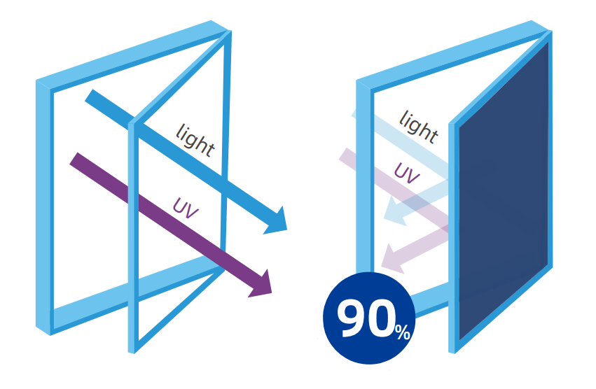 Není nutné žádné složité ovládání nebo elektrické zařízení. Fólie se samy ztmavnou při silném slunečním záření a opět se vyjasní, jakmile podmínky změní. Stejně, jako fotochromatické brýle reagují na světlo, naše fólie se přizpůsobují bez jakéhokoli zásahu z vaší strany.